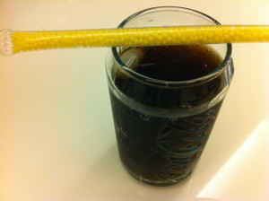 冷やしたコーラに、このストローを入れて飲むとレモン味のコーラに早変わりするらしいのです